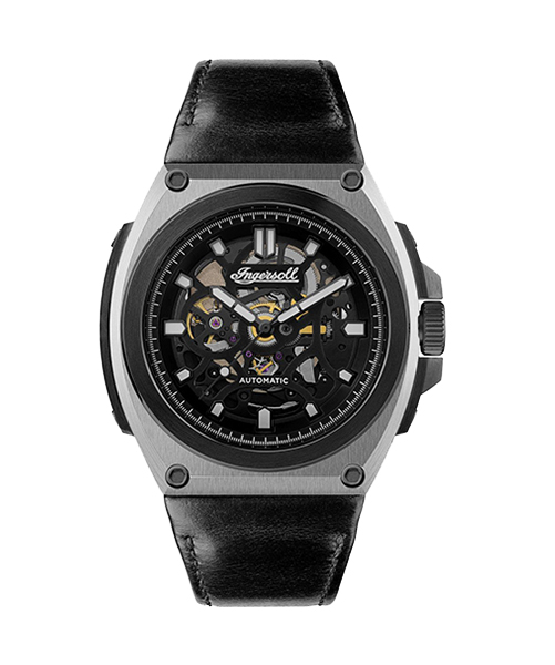 A contemporary and bold design. A luxury sports inspired watch typified by its purposeful construction and black exposed skeleton movement finished with contrasting hands and batons. An integrated custom Horween leather strap completes this unique timepiece.