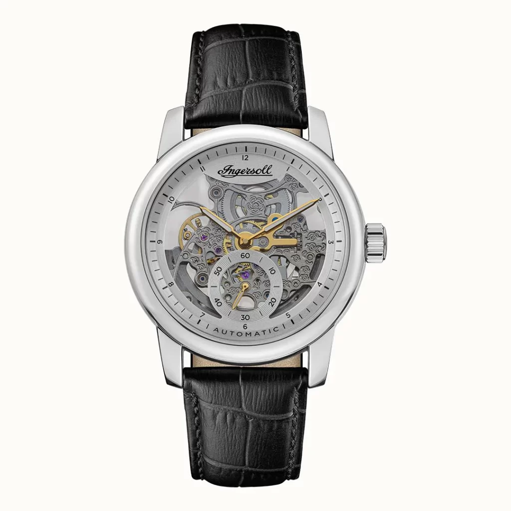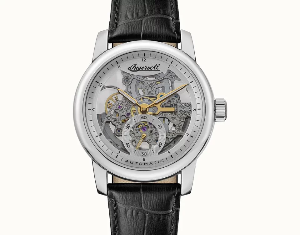 The perfect embodiment of an Ingersoll timepiece. Designed with classic craftmanship in mind the Baldwin features a skeletonized dial that showcases the level of intricate detail that powers the collection. Housed in a 43mm round case, available in silver and in a rose gold and silver two-tone, this timepiece is finished was a classic croc leather strap.