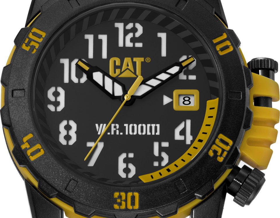 The CAT Groovy watch has a combination of function and style. The watch is made up of a black face, a resilient polycarbonate case with a silicone strap. The black and yellow dials are presented in powerful cat color combinations.