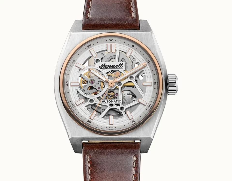 Ingersoll 1892 The Vert Automatic Mens Watch with White Dial and Brown Leather Strap - I14302