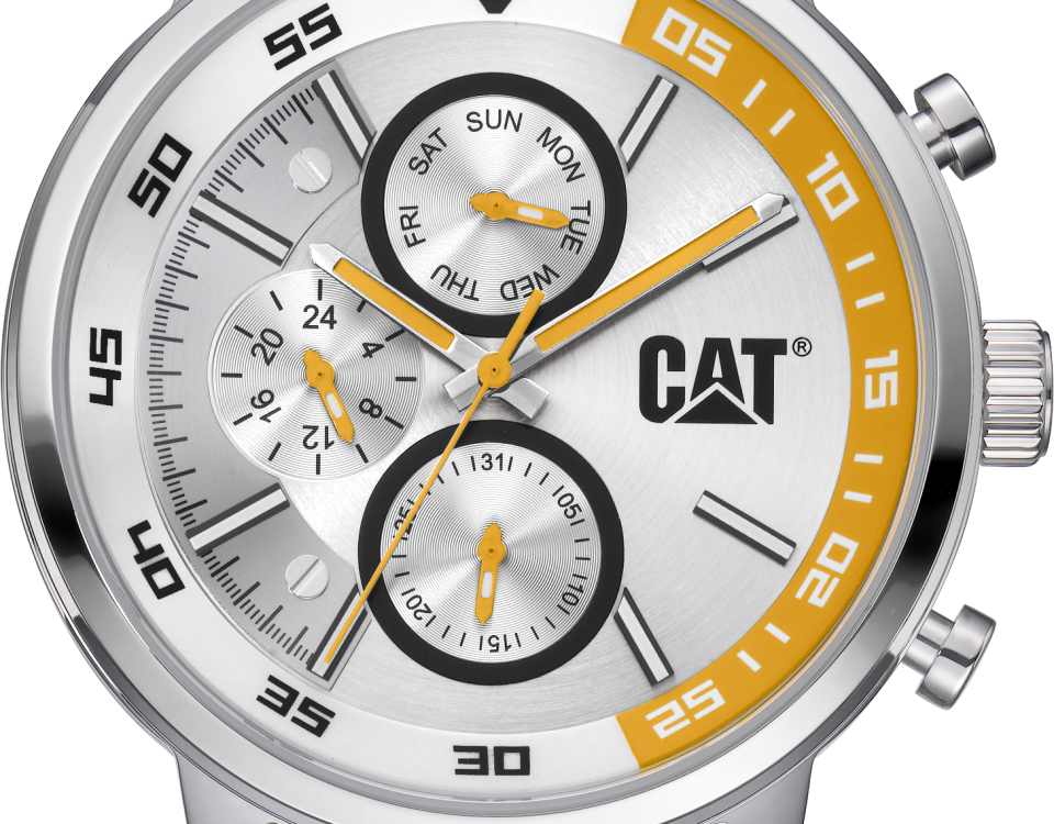 The Cat Sail watch displays a sophisticated multi-dial design, allowing you to keep track of the day, date, and the 24-hour clock. With its distinct nautical look and feel, this collection is a tribute to the adventurous spirit of the sea. Available in a range of classic Cat colors and mixed materials, offering a timeless look for those who appreciate functional longevity.Prev page