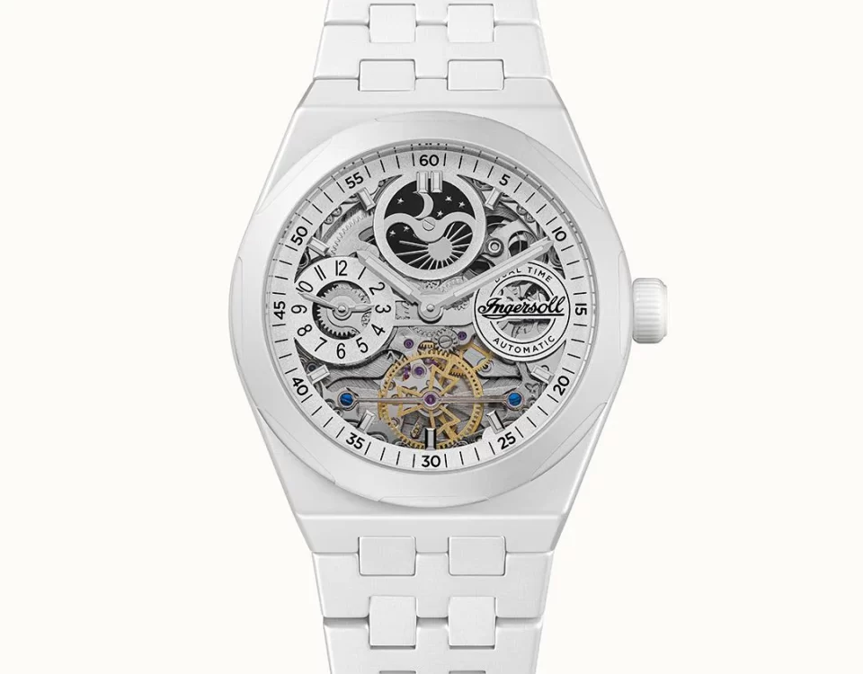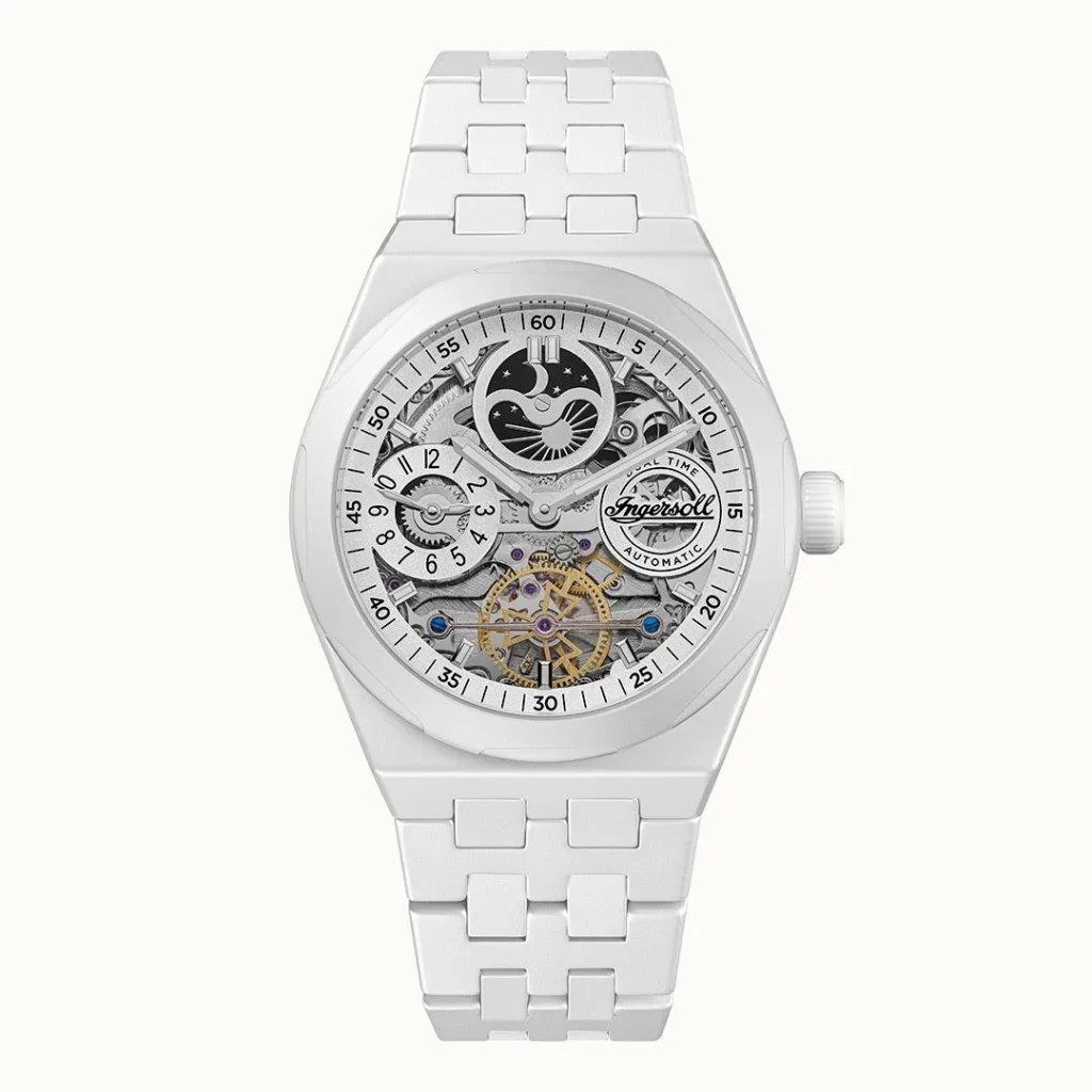 The Broadway watch is completely transformed in this latest edition. Crafted from the highest quality ceramic, in a smooth high polished finish. The ceramic version of this iconic watch follows the clear design lines of the original version. The bold case with its integrated and segmented bracelet framing the intricately designed skeleton dial.