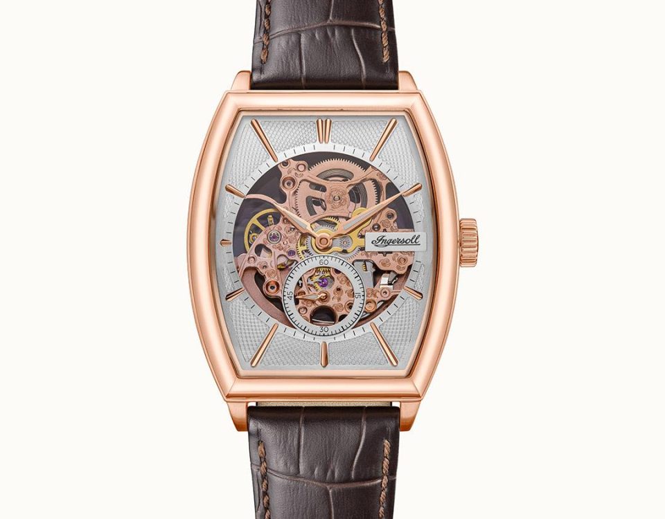Ingersoll: The Producer Automatic Watch - Every detail of this automatically powered timepiece makes it the ultimate instrument for timekeeping. Starting off with the case, stainless steel material is finished off with a polished rose gold gleam whilst being in a vintage rectangular shape