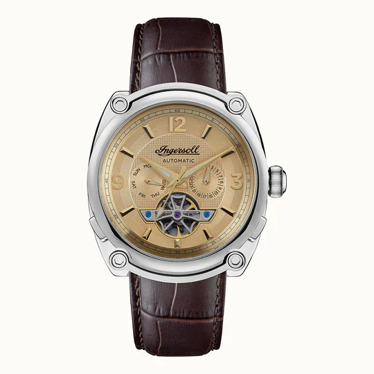 Ingersoll 1892 The Michigan Automatic Mens Watch with Champagne Dial and Brown Leather Strap - I01108