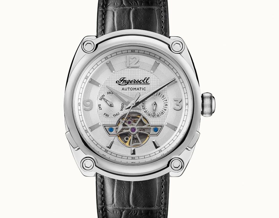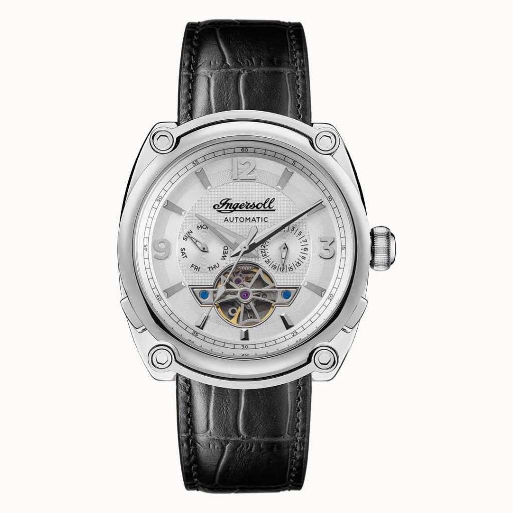 The Michigan Automatic Men's Watch with Silver Dial and Black Leather Strap. The Michigan houses an automatic powered movement and features a design that represents Ingersoll’s legacy for precision timepieces.